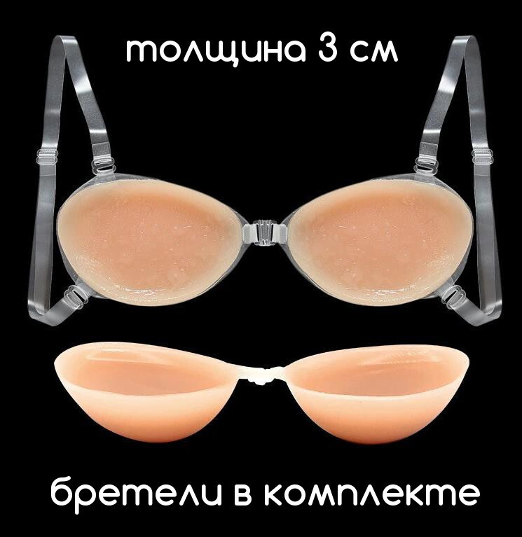 Бюстгальтер подойдет на плоскую грудь или свой 1 размер груди (чашку А), после надевания получится 2 размер (чашка В).