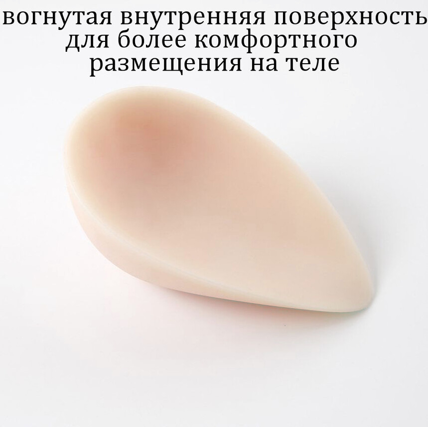 На обратной стороне протеза есть выемка для размещения собственной груди. Края протеза очень тонкие, что позволяется сделать переход от протеза к телу максимально плавным.