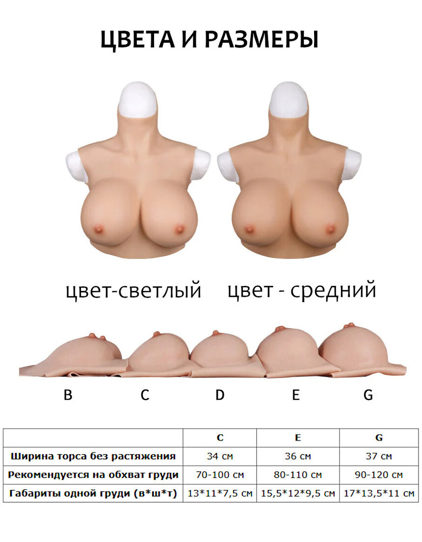 Перед надеванием торсов рекомендуется опудрить тело и внутреннюю поверхность торсов тальком. Не забудьте завернуть шею на торсе перед тем как надевать издение, это уменьшит нагрузку на тонкий край силикона и поможет снизить вероятность разрыва.