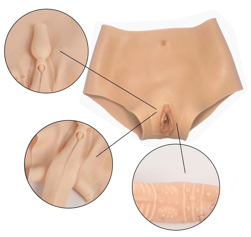 Накладная вагина имеет вагинальное отверстие с внутренним чехлом. Внутренняя поверхность вагинального чехла имитирует фактуру поверхности влагалища.