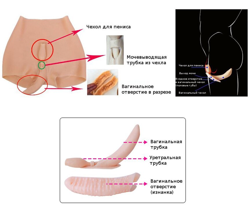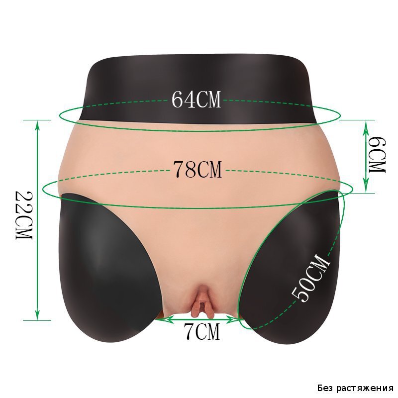 Накладная вагина имеет вагинальное отверстие с внутренним чехлом. Внутренняя поверхность вагинального чехла имитирует фактуру поверхности влагалища. Возможность анального проникновения не предусмотрена.