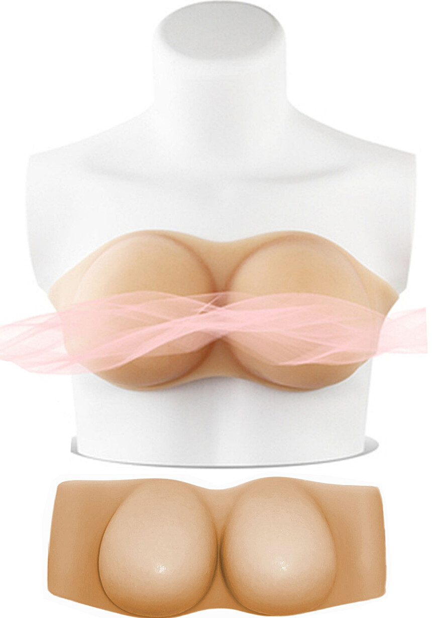 Новая модель силиконовой груди выполнена в форме топа. Для надежной фиксации протезы необходимо носить с бюстгальтером.