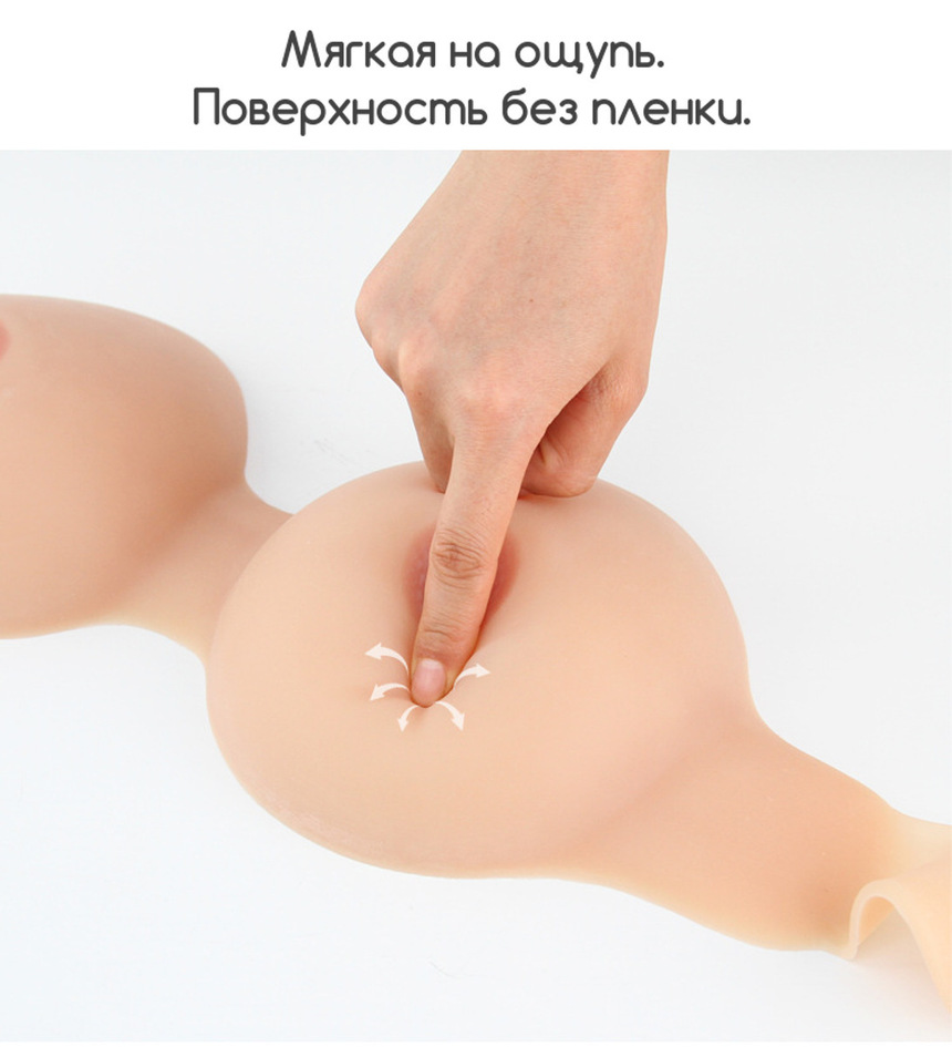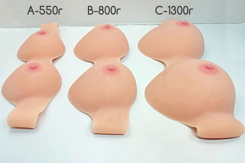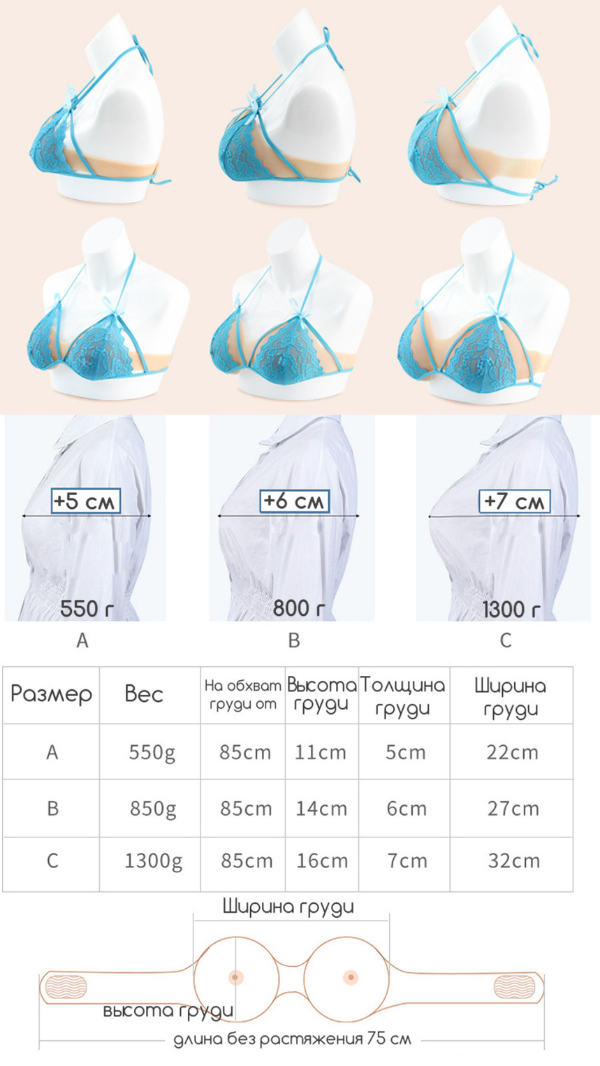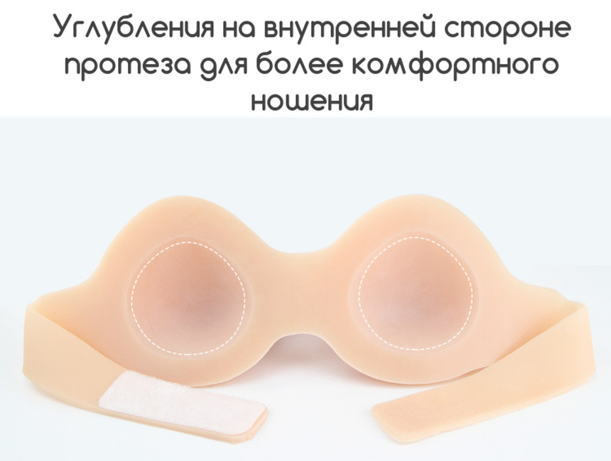 Новая модель силиконовой груди выполнена в форме топа. Для надежной фиксации протезы необходимо носить с бюстгальтером.