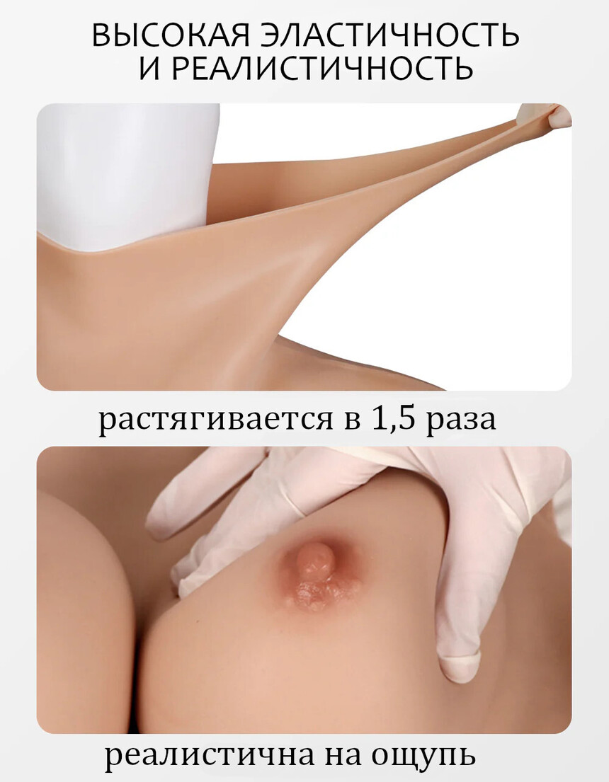 Перед надеванием торсов рекомендуется опудрить тело и внутреннюю поверхность торсов тальком. Не забудьте завернуть шею на торсе перед тем как надевать издение, это уменьшит нагрузку на тонкий край силикона и поможет снизить вероятность разрыва.
